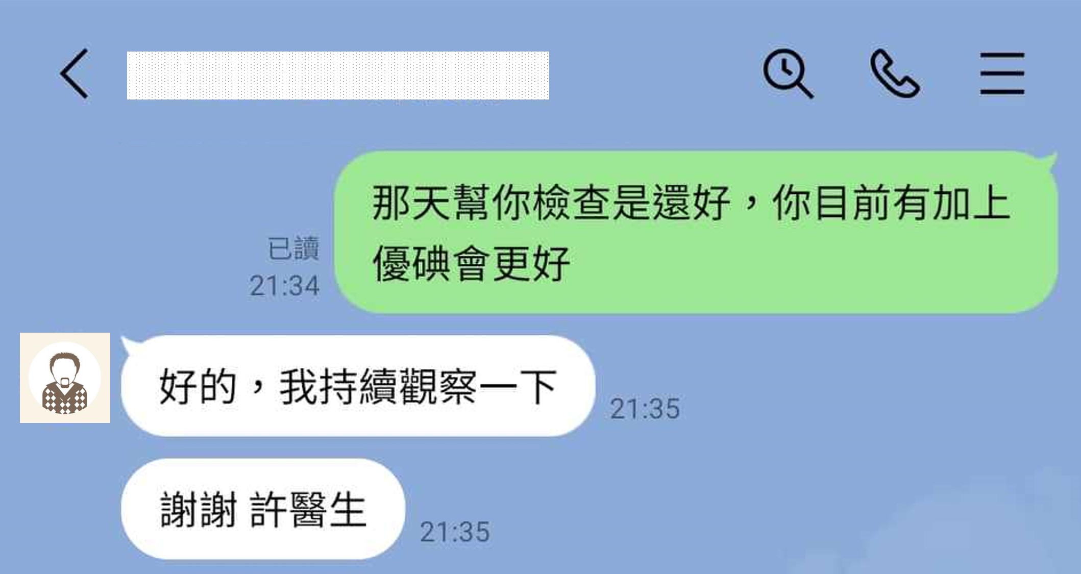 「一開始很緊張,過程中你的專業與細心,瞬間讓我放心許多,許院長,謝謝您! 」